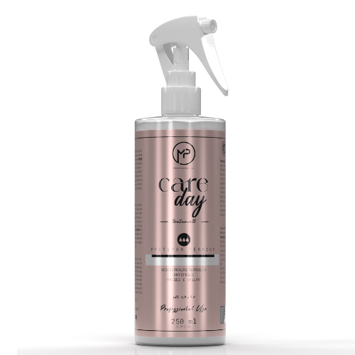Borrife e espalhe o Protetor Térmico Care Day no comprimento e pontas, finalize como desejar. Não enxaguar. Ideal para ser utilizado antes do secador ou prancha.